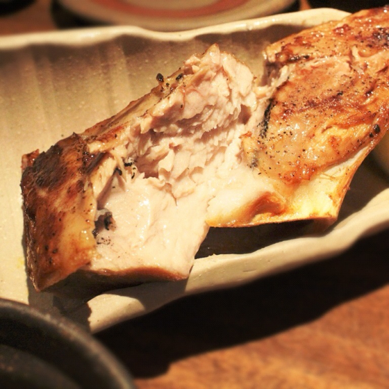 九州黒岩山で放牧された『尾鈴山地鶏』という入手困難な山地鶏を炭火で炙り焼きにしています。