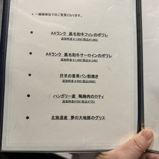 この日は、A4ランク黒毛和牛フィレのポワレを追加。