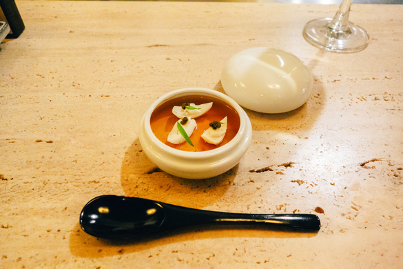 上には雲丹が贅沢にのっており、甲殻類のジュレとともに口の中にまろやかな旨みが広がります。