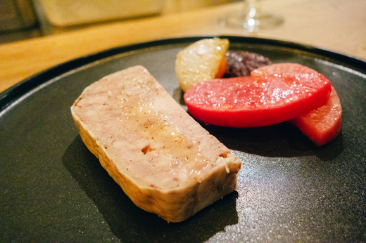 カブ・ビーツ・しぐれ大根などの根菜マリネと一緒にいただくパテ。フレンチのレシピを和風にアレンジした軽やかな一皿。