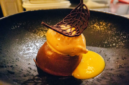 6時間煮込んだオレンジソースと濃厚チョコレート。煮込んだリンゴの食感がいいアクセント。