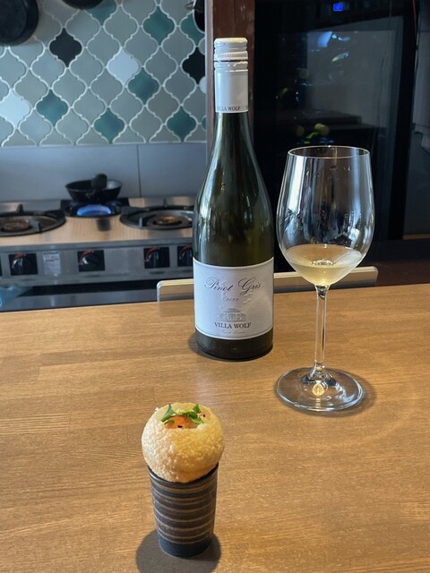 心の中のガッツポーズが止まらない。スパイス感/香り高さ/クリーミーさ/旨味/酸味/甘味/とにかく凄かった。いつも凄いけどこれは特に圧倒的唯一無二な味わい。何をどうやったらこのお料理に辿り着いて完成させられるんだろう。ペアリングのワインが鮭コルマを爽やかにさせてるのも神。
