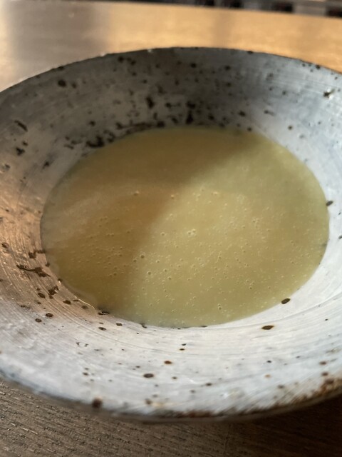 さっぱりした。とよさんは納豆の魔術師だとも思ってる。さっきの珈琲ラジマがインパクトだとしたらこれは次のお料理に向けて口の中を整えてくれた印象。酸味の強いワインとバチコイ決まって気持ちよかった。
