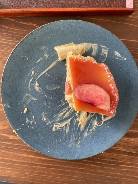 神ムースリーヌの表情が鳥肌立つくらいに素敵だったのが今回特に印象的で。アーモンドミルクの風味が前よりも色濃く感じられて香りの輪郭に度肝抜かれた。その香り豊かなムースリーヌと桃の組み合わせがあんまりに素敵で素敵で。反省を活かして保冷剤で温度管理して宝石たちをお持ち帰りできたから今回みたいな香りの神ムースリーヌの御尊顔を拝せたのかな。それか桃の品種に応じて色鮮やかに美しさを変幻自在に変えてる…?わしゃたまげたばい。次の日もうんまかった。