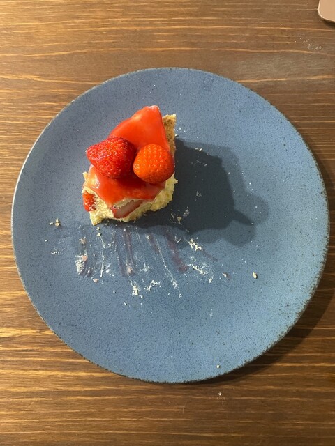 上層部はいちご・シャインマスカット・洋梨、生クリームとたっぷりのカスタード。下層部はいつものザクザク神タルトといちごジャム。仕上げにキャラメルソースとクランブルかな。見た目で伝わってると思うけどこの子本当に半端なく美味しいのよ。どう食べてもカスタード・生クリーム・キャラメルソースがついてきてくれて。カスタードと生クリームの組み合わせがただでさえ極上なのにそこに優しい甘さの中にキレがあるキャラメルソースが加わる事で美味しさの新境地に達してた。この3つの組み合わせも凄まじく極上やで..