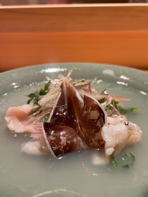 鳥貝の柔らかいコリコリ、その出汁の美味しさが至福。至る所に旨みがあって幸せ