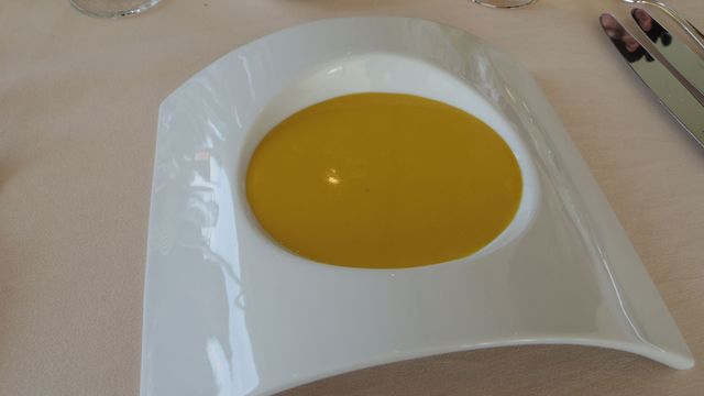 器も温められていて、なめらかで、カボチャの甘みをほんのり感じるさっぱりしたスープで美味しいです。