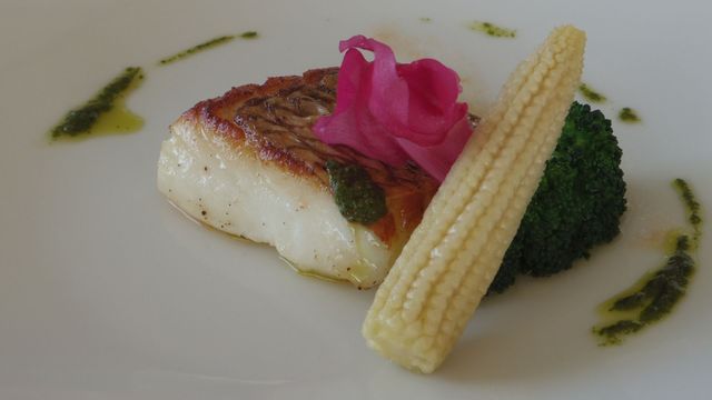 真鯛のグリル 完熟トマトのクーリとジェノベーゼ