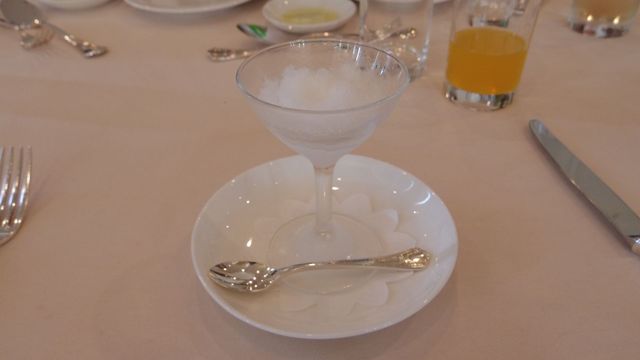 グラニテはシャーベットです。白い色で食べてみると梅のさわやかな味わいを感じます。
