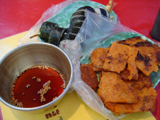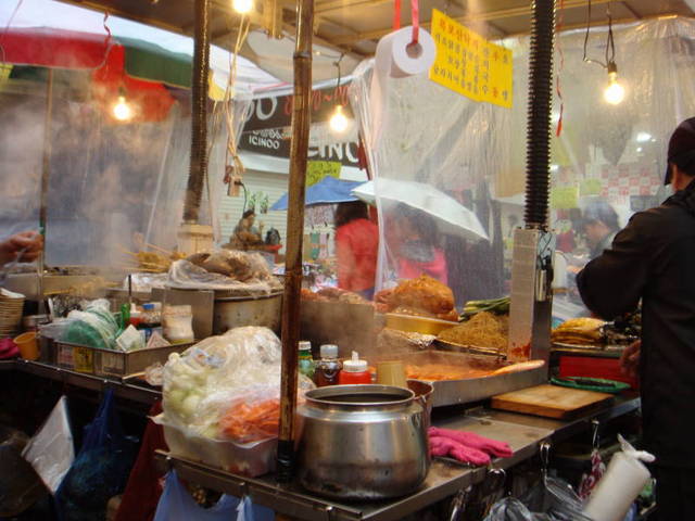 ソウル、南大門の屋台で、チヂミとキンパブ (2012/01/21)