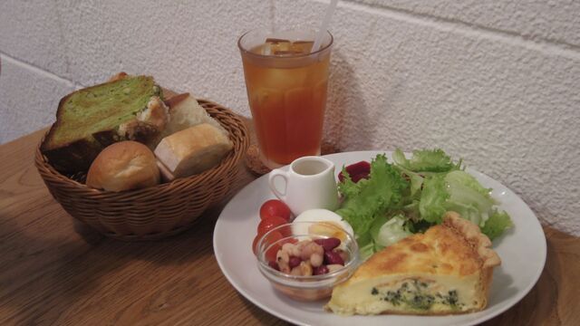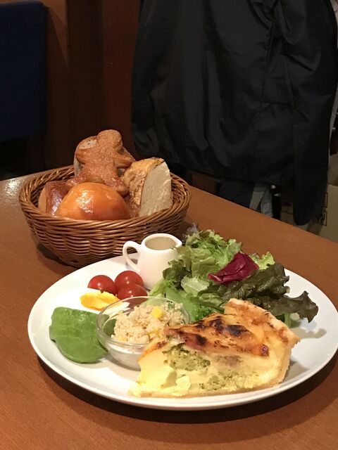 サツマイモのキッシュがほんのり甘くて美味しい!パンの盛り合わせは幸せ!