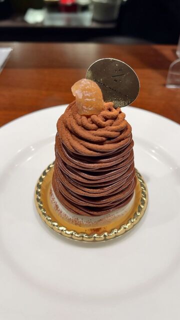 小さな円柱形のチョコレートケーキでしっとり生地、チョコレートクリームは粘性が高いためか、流れ出しのとろーりは控えめ、ビターなコクを感じながらケーキの方にはほんのり甘さもあります。
