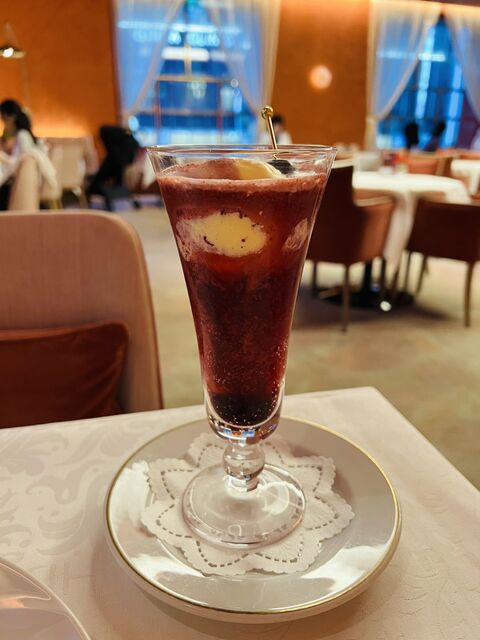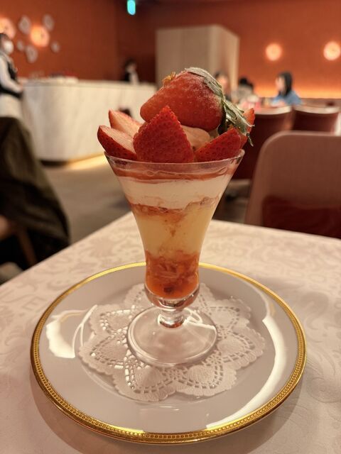 ストロベリーソースはグラスの淵にあり、トロッとした食感でしっかりした甘さを感じます。