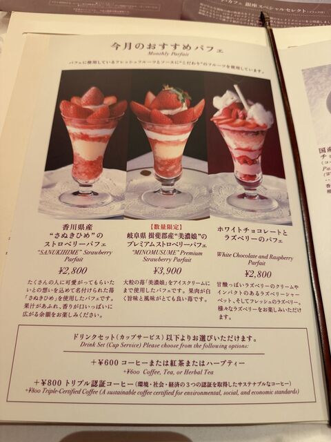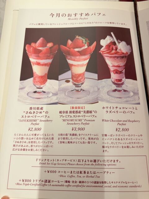 パフェのいちごは全て「美濃娘」を使っていて、ストロベリーアイスクリームもストロベリーソースも「美濃娘」が使われています。