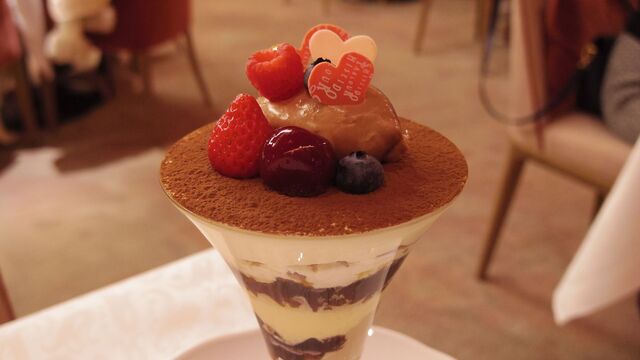 4月の三種類のパフェのうちのひとつ「紅い雫」です。