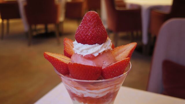 和歌山県産のいちご、まりひめ を使ったスペシャルストロベリーパフェ。