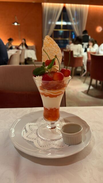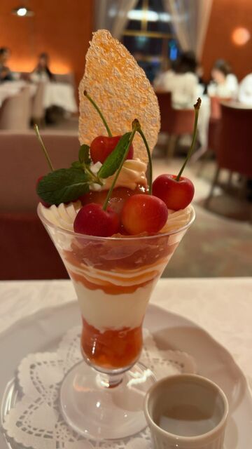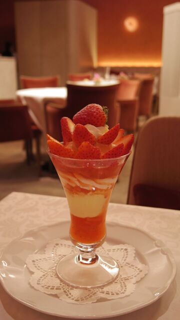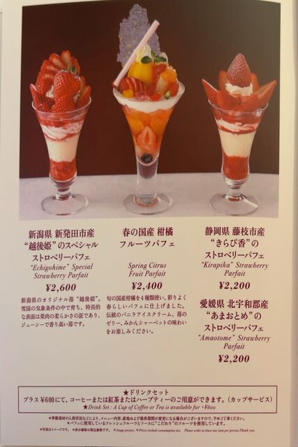 メニューには『赤く輝く宝石“ルビー”のように色艶が美しい苺“アスカルビー”をソースにも使用したパフェです。』とあります。