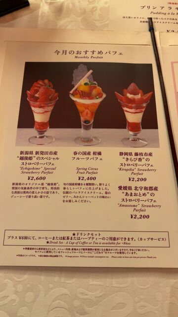資生堂パーラーのカスタードプリンは、クラシカルフォルムで好きなのですが、パフェが毎月たくさんの種類がありなかなか頼めない品。