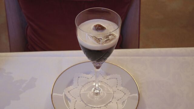 カフェ ア ラ ネージュは、グラスに珈琲の氷がはいっていて、テーブルの上でスタッフさんが、まず真っ黒なアイスコーヒーを注いでくれ、次に真っ白な濃厚クリームを注いでくれます。白と黒の二層が綺麗で、名前の通り雪をイメージした、濃厚なカフェラテの様なドリンクです。