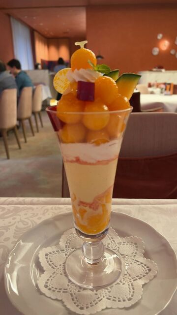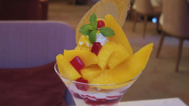 キーツマンゴーのパフェは、収穫量が少なく貴重と言われるキーツマンゴーを使ったパフェで、8月の中旬から月末までで提供期間も短い幻のパフェです。
