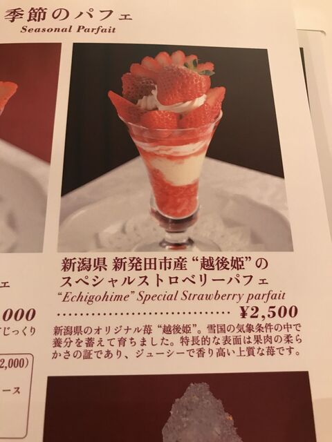 新潟県のオリジナル苺の「越後姫」を使ったスペシャルストロベリーパフェです。