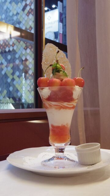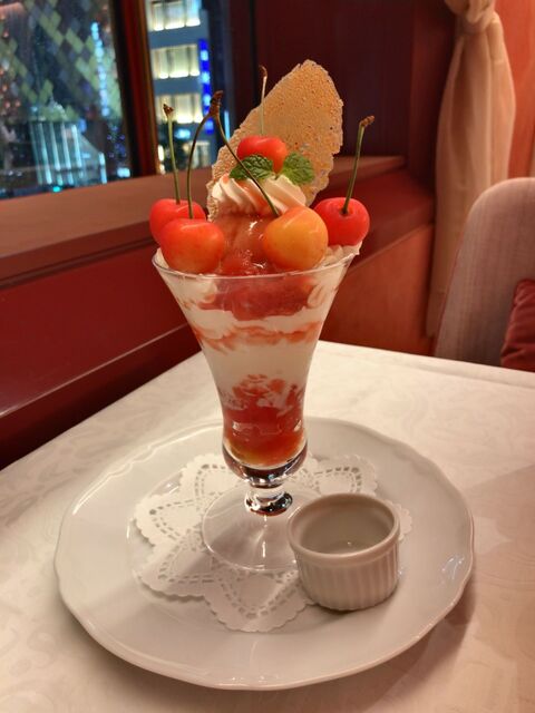 つい、頼んでしまった、さくらんぼの佐藤錦のパフェです。