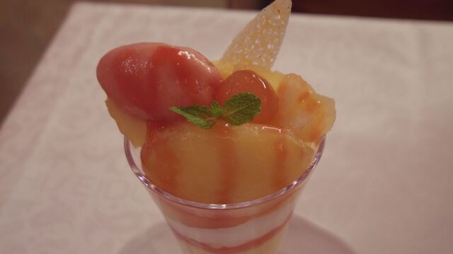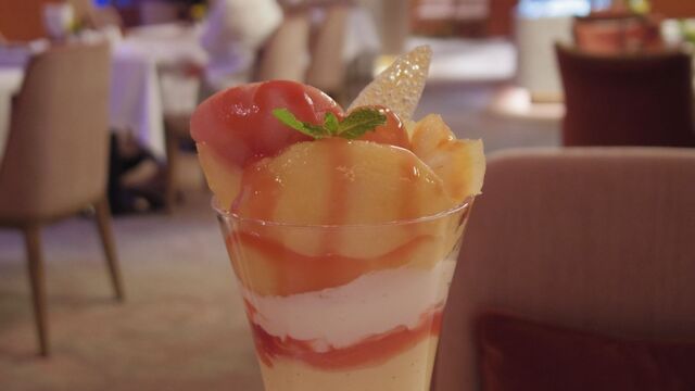 和歌山県産のあら川の桃を完熟させ、パフェに乗せたそうです。