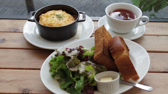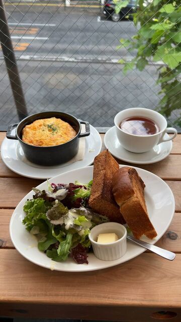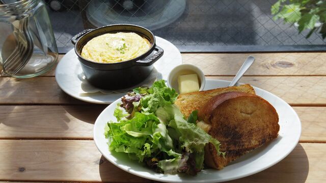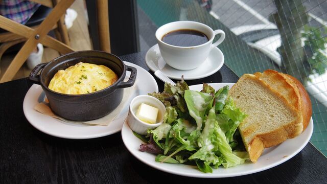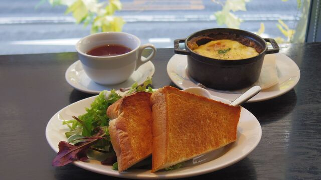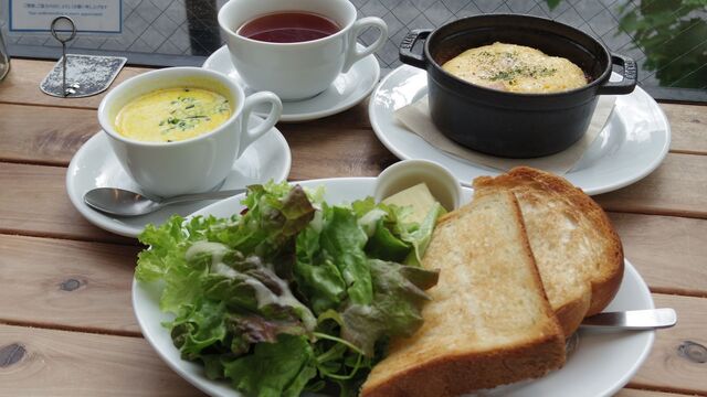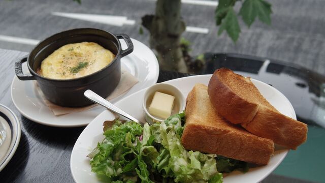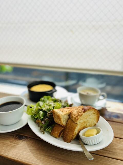 トーストセットは、山型トーストに、サラダ、卵料理、ドリンクのセットです。