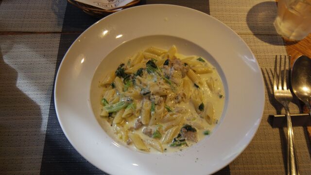 ペンネ 豚サルシッチャとほうれん草のクリームソース