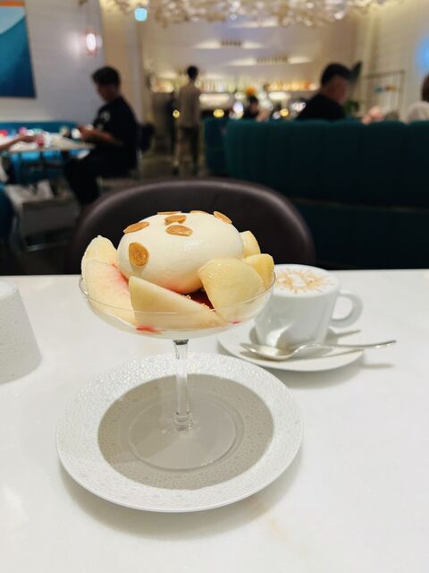 グラスに並べられているフレッシュな桃はやわらかくすっきりした甘さを感じます。