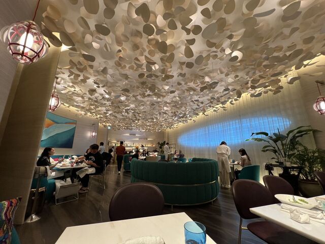7階のカフェは行った時は満席近く長ソファーのテーブル席に案内されました。