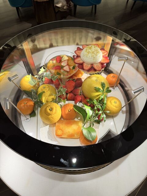 さくらんぼは、柔らかく甘酸っぱく、白玉のもちもち感、ブランマンジェの甘さ、杏の酸っぱさ、抹茶ゼリーの苦さがいいです。