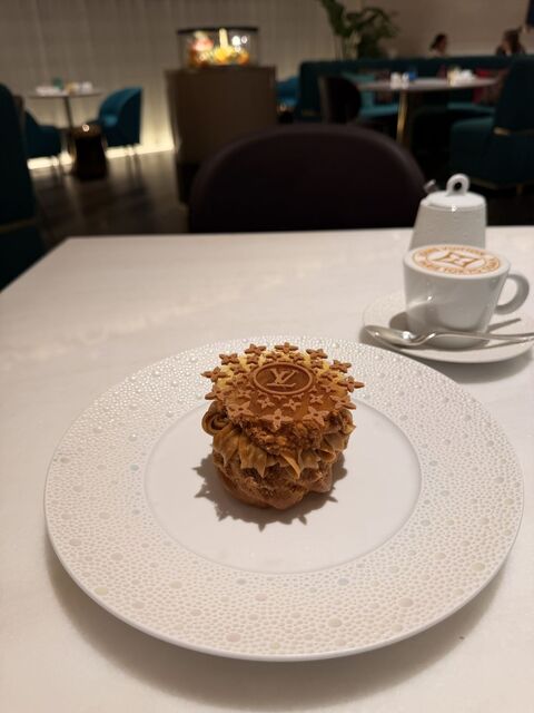 カプチーノはLOUIS VUITTONのロゴがラテアートで描かれています。