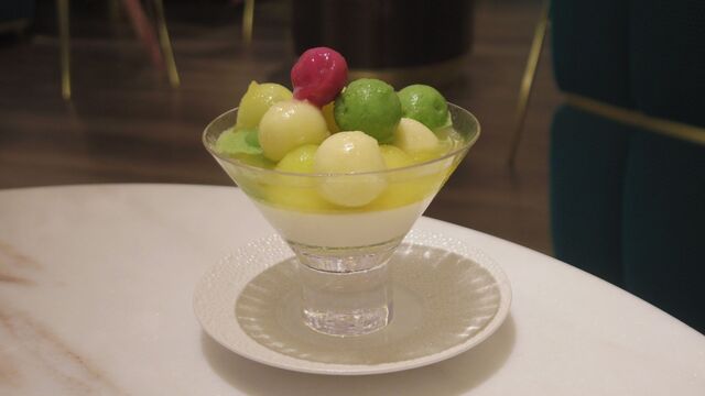 静岡マスクメロンのクープ アーモンドのブランマンジェ ミントのソルベ