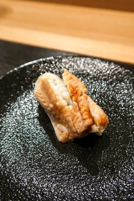 ふわっふわの煮穴子の握り。口に入れた瞬間にシャリと穴子がほぐれて口中に旨味が広がる〜♪