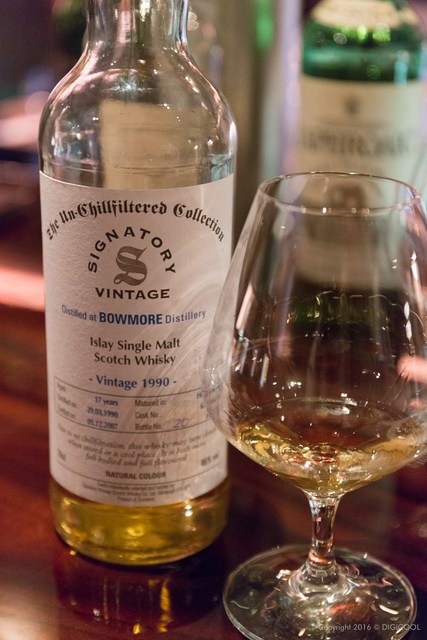 ウイスキー2杯目はボウモア18年シグナトリー・ヴィンテージ。アルコール度数は46.5%