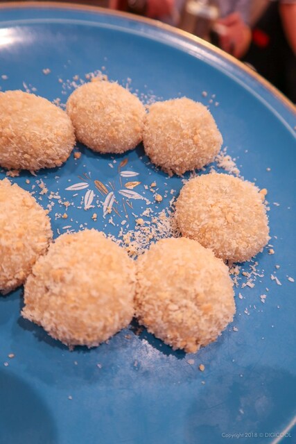 デザートのココナッツもち。ほわほわやわやわの餅の周りにはココナッツがまぶしてあり、中には素朴な味わいのぼてっとしたカスタード餡がはいっていました。鍋の後じゃなきゃ5個は食べたい(笑