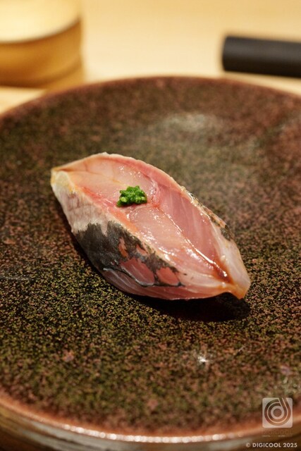 長崎県産の「アジ」がキラキラしている。身も厚くてプリプリとした歯ごたえも最高にいい。青物好きにはたまりませんね。