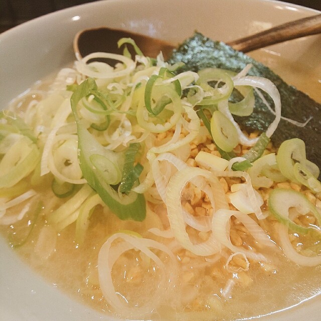 さらに卓上のすり下ろしニンニクと入れ放題の長ネギを投入!完璧です。