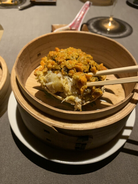 「鴛鴦蒸蟹」…上海蟹雄雌の蟹肉と上には味噌がミルフィーユ状態