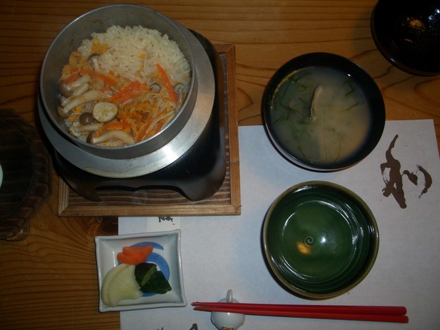 最後の方には、釜めしが出てきたのですがすでにお腹はいっぱいになっていて、持ち帰り用のパックに半分は詰めてしましました。(私は完食)