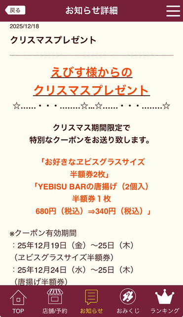 ヱビス様からのクリスマスプレゼント第2弾