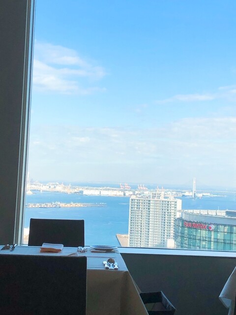 当店は横浜駅近くのスカイビル29階にあり、みなとみらいエリアの海と美しい眺めに合った料理が提供された。どれも美味しく、流石巨匠ミクニのお店!