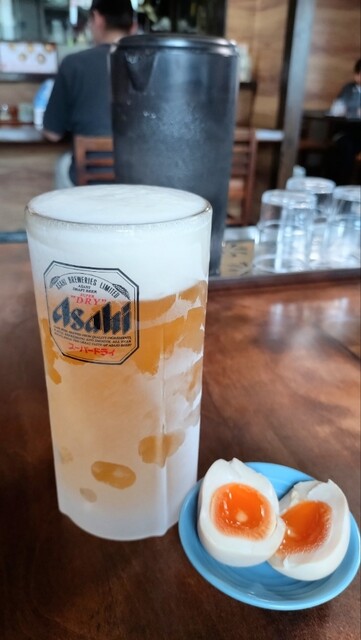 味源さんとはかれこれ20年以上のお付き合いですが、もう10年以上はオロチョン以外のラーメンを食べたことがなかったのでとても久々に味噌ラーメンを油多めでオーダー。あとは半チャーハンと生ビール、ビールのアテに味玉を。