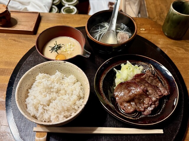 炭火焼きの牛タンを主軸に、麦ご飯やとろろ、牛テールスープを組み合わせた定食は、滋養という言葉が自然に浮かぶ構成です。あくまで私個人の感覚ですが、食後に身体が過度に重くならない点も、この店の大きな特徴だと感じています。