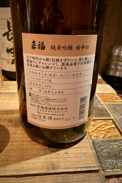 この日は年初最初の労働日で、平日の夕方でした。店内はすでに予約で満席とのことでしたが、店の方よりご提案がありました。予約の方が来るまでであれば、カウンターで対応できるという内容です。時計を見ると、入店からラストオーダーまで、およそ15分しかありません。条件としてはかなり厳しいはずですが、その一言があったことで、私は「じゃあ、入ります」と自然に口にしていました。独り飲みであること、この店の酒と肴を把握していること、そのすべてが噛み合った瞬間だったと思います。