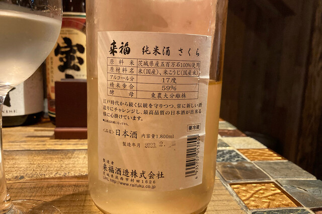 ◇来福 さくら酵母 純米うすにごり 生原酒