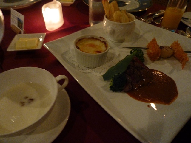 宿泊中はホテルのフレンチレストランでディナーを楽しみました~☆