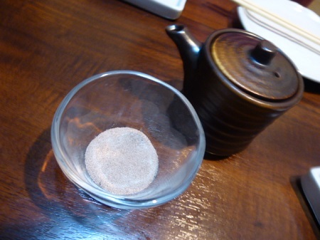 自家製ぽん酢と、海藻と海水のミネラルたっぷりの長崎県産藻塩が出てきました。