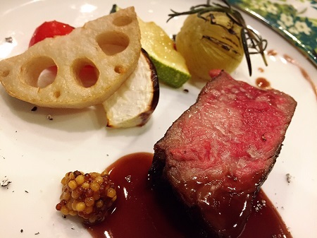 ■黒毛和牛サーロインのビステッカ釜焼きの野菜と共に